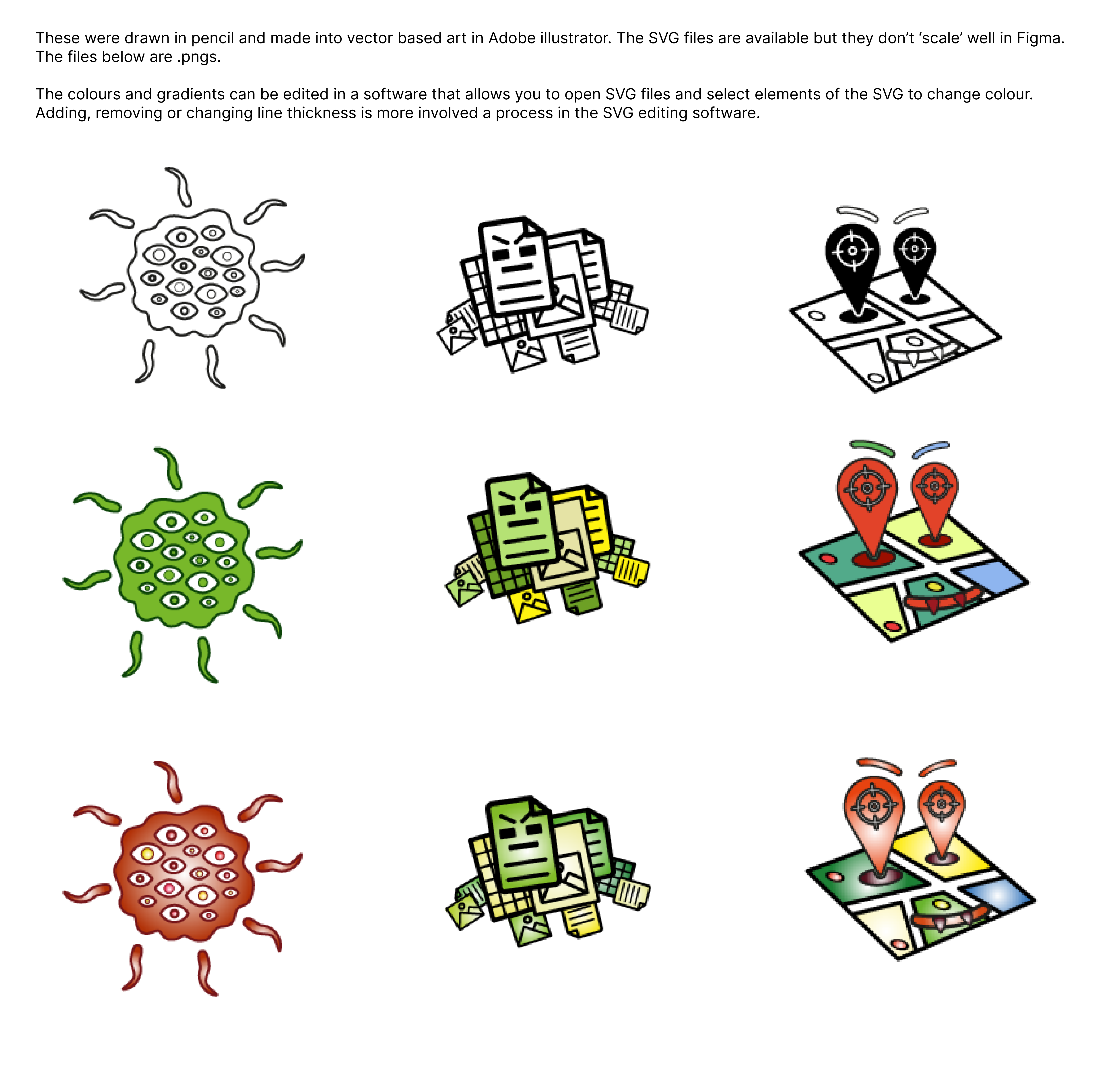 And the team wanted to also explore some fun and light-hearted way to express the risks to users through creating characters out of the common worries associated with ‘infected’ documents. Here you can see a spyware, document -copier and geolocation tracker characters.
